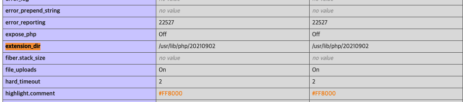 이 설정은 확장 모듈이 존재하는 /usr/lib/php/20210902 (웹에서 찾은 경로)와 일치하지 않기 때문에 문제가 발생하고 있는 것이다.